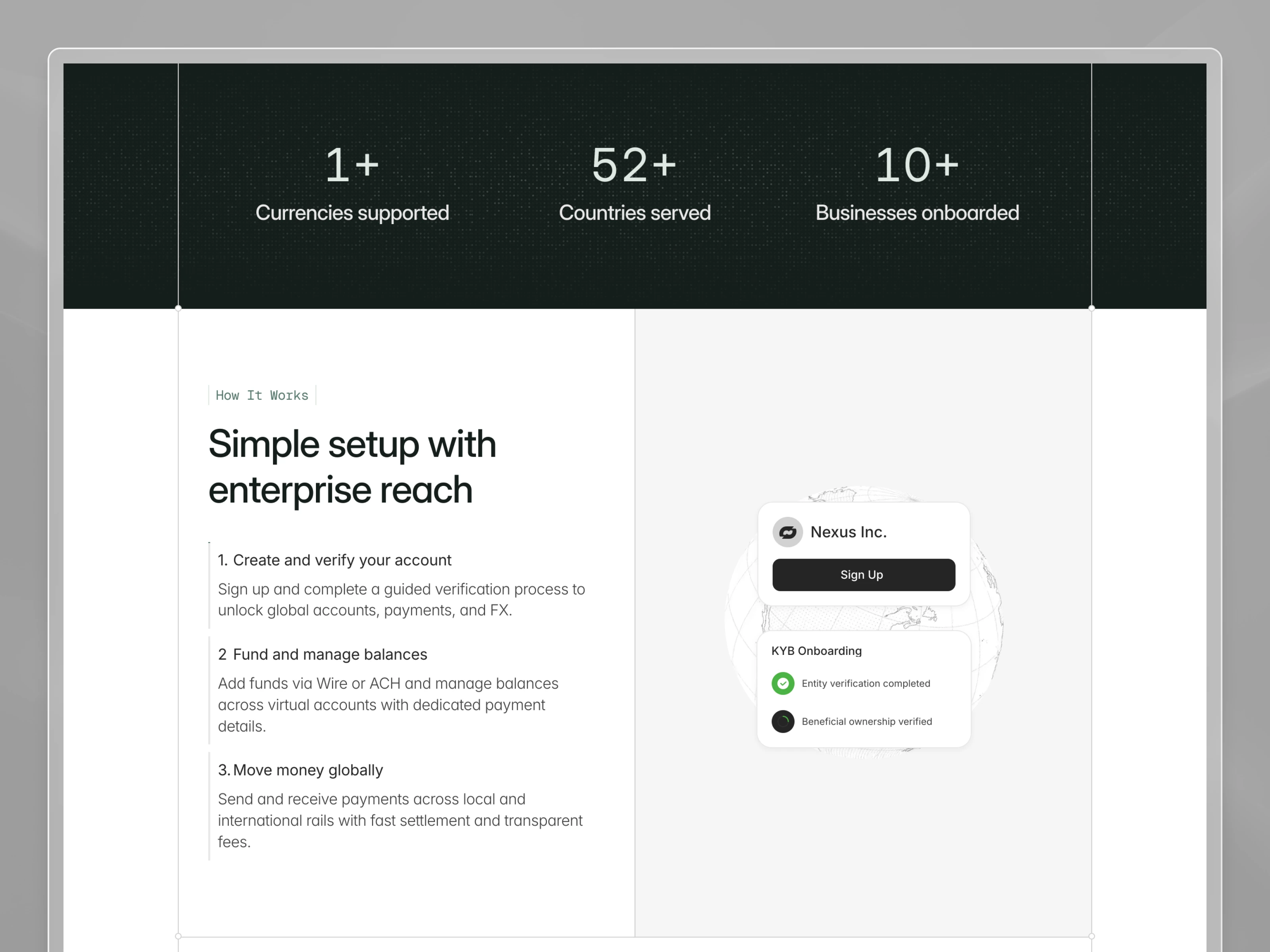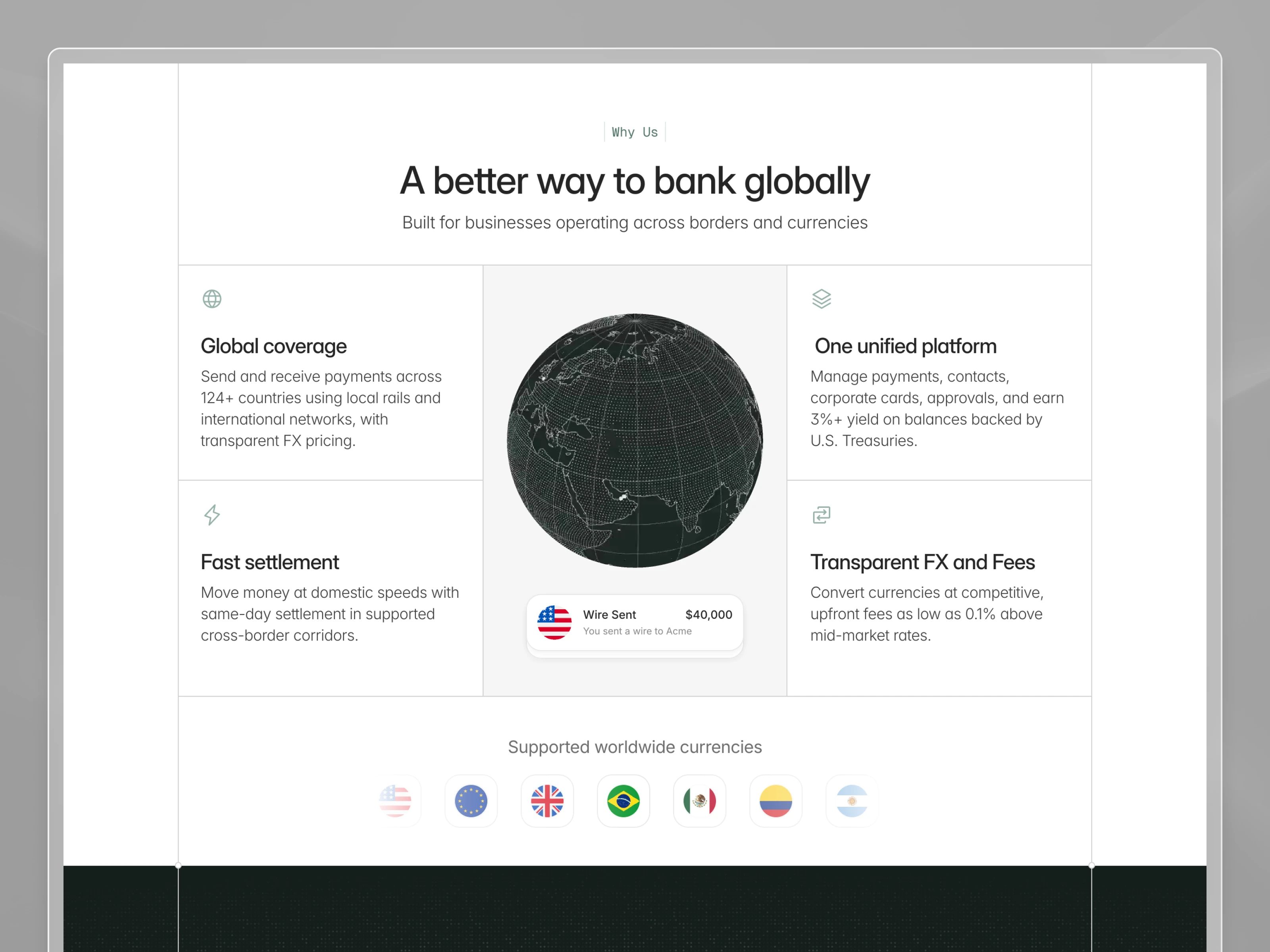 Created the full brand identity and designed and built the marketing website in Framer, translating complex fintech concepts like stablecoin settlement and virtual accounts into clear, modern visual storytelling.